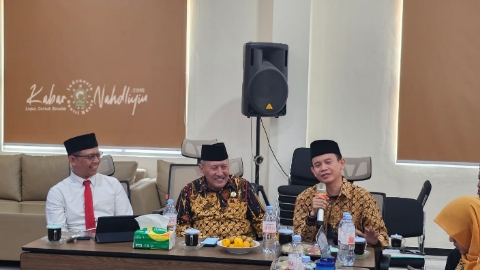 JOMBANG | KabarNahdliyin.com — Kepala Kantor Kementerian Agama (Kemenag) Kabupaten Jombang, Muhajir, menerima audiensi Ketua Dewan Pendidikan Kabupaten Jombang, Cholil Hasyim, beserta jajaran pengurus di Aula Pusat Layanan Haji dan Umrah Terpadu (PLHUT), Senin (10/11/2025).